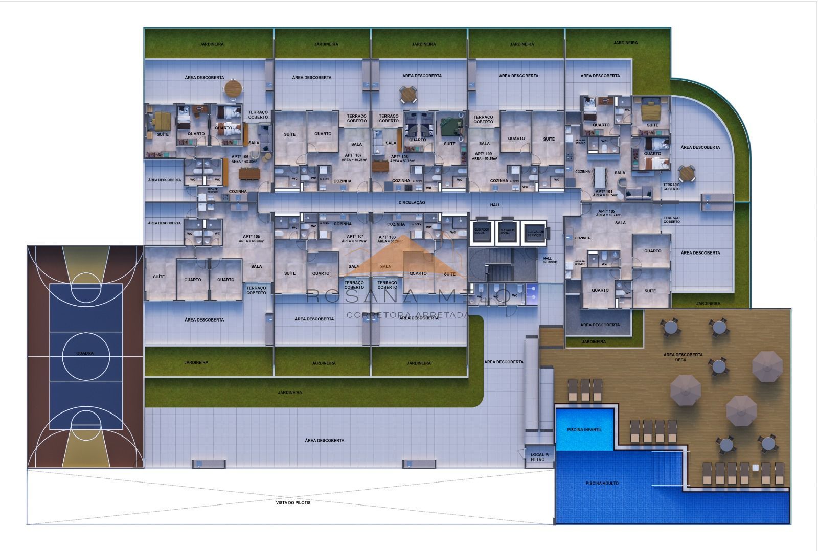 – Piscina adulto e infantil com deck