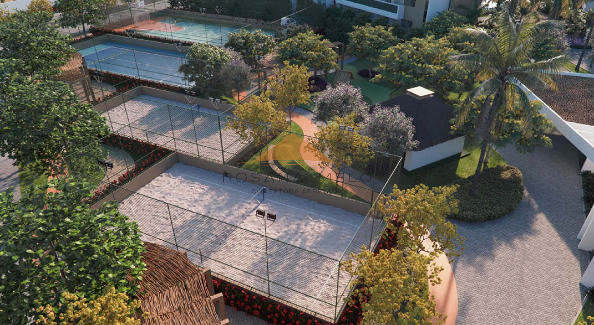 localizado ao lado das quadras de esportes e do restaurante, voltado para o nascente.